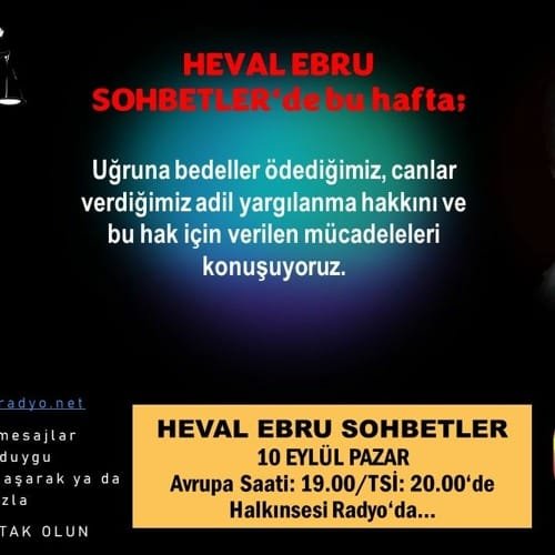 ProgramHeval Ebru Sohbetler Adil Yargılanma Hakkı By Halkın Sesi Radyo - 11 Eylül 2023 0 Share FacebookTwitterE-posta Halkın Sesi Radyo’da 9 Eylül Cumartesi günü yayınlanan Heval Ebru Sohbetler programının kaydını paylaşıyoruz. Halkın Sesi RADYO · Heval Ebru Sohbetler – 10.09.2023 TP