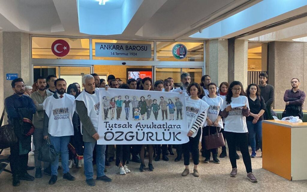 Ankara’daki eylem, Ankara Adliyesi’ndeki Ankara Barosu önünde gerçekleştirildi. Avukatlar adına ÇHD Ankara Şubesi Başkanı ve Halkın Hukuk Bürosu avukatı Ceren Yılmaz tarafından okunan açıklamada özetle, “sahte ve hukuka aykırı delillerle verilen kararların bozulması, tüm avukatların tahliye edilmesi ve avukatlık mesleği ile savunma makamı üzerindeki baskılara son verilmesi” talep edildi.