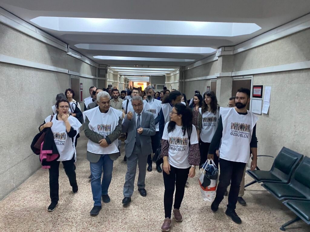 “İlk gün, basılan bürolarda 11 çelik kapı bulunduğu açık yalanını, hem de İstanbul Adliyesi’nde bir başsavcı vekiline söyletenler, derneğimizi ve meslektaşlarımızı fiili olarak çalışamaz hale getirmek istedi. Bugün, yargılandığımız ve mahkum edildiğimiz, hapishanede dost ve meslektaşlarımıza yıllardır hasret duyduğumuz son 10 yılımıza bakıldığında, bizim de irade beyanımız kısa ve nettir: Susmadık ve susmayacağız.
