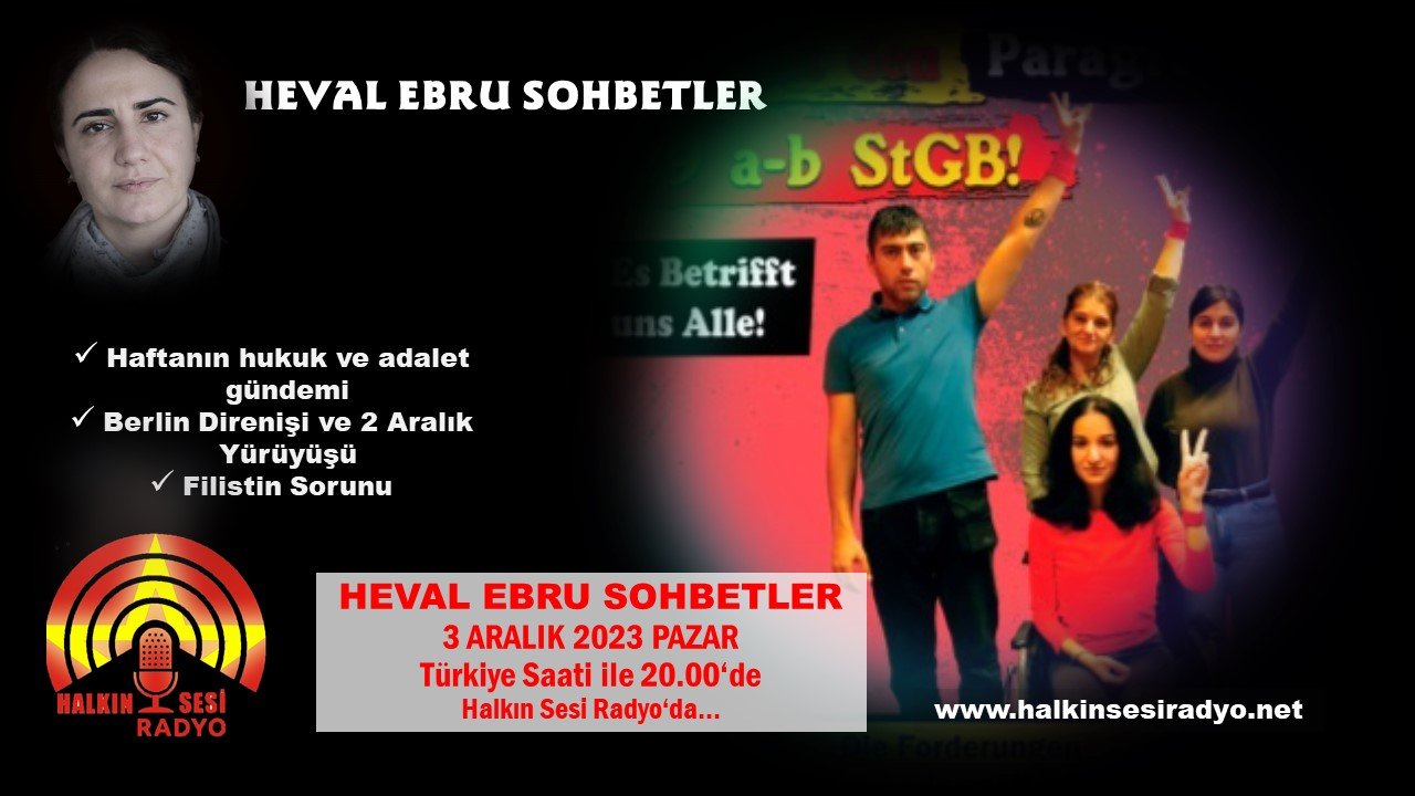 Halkın Sesi Radyo’da yayınlanan Heval Ebru Sohbetler Programının 3 Aralık Pazar Günü yayınlanan bölümünde haftanın hukuk ve adalet gündeminden haberler ve ülkedeki ve Avrupa’daki direnişlerle Filistin gündemi konuşuldu.