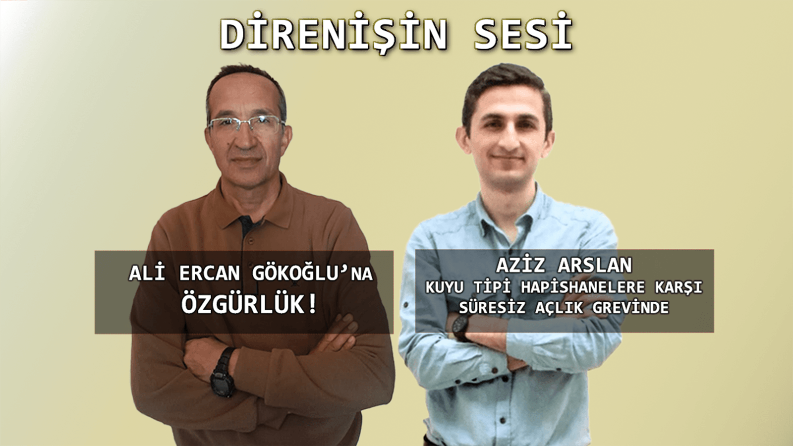 Direnişin Sesi’nde 6 Kasım Çarşamba günü yayınlanan, kuyu tipi tecrit hapishanelere karşı Burdur Yüksek Güvenlikli Hapishanesi’nde süresiz açlık grevinde olan Özgür Tutsak Aziz Arslan ile Yunanistan’da sınır dışı tehditleri ve ”idari tutukluluk” baskılarına karşı süresiz açlık grevine devam eden Ali Ercan Gökoğlu’nun direnişlerinin anlatıldığı bölümün kaydını paylaşıyoruz.
