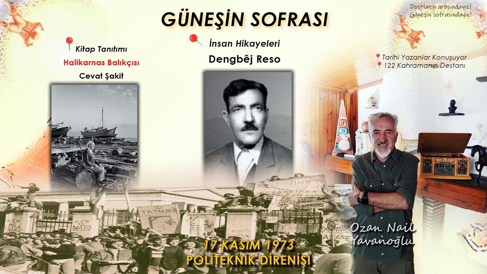 Güneşin Sofrası’nda 17 Kasım Pazar günü yayınlanan, Yunanistan’da Albaylar cuntasına karşı direnişin sembolü, anti faşist ve anti emperyalist mücadele tarihinde çok büyük bir yeri olan Politeknik Direnişini anlatıldığı, insan hikayelerinde Dengbêj kültürünün önemli isimlerinden Dengbêj Reso’nun anlatıldığı