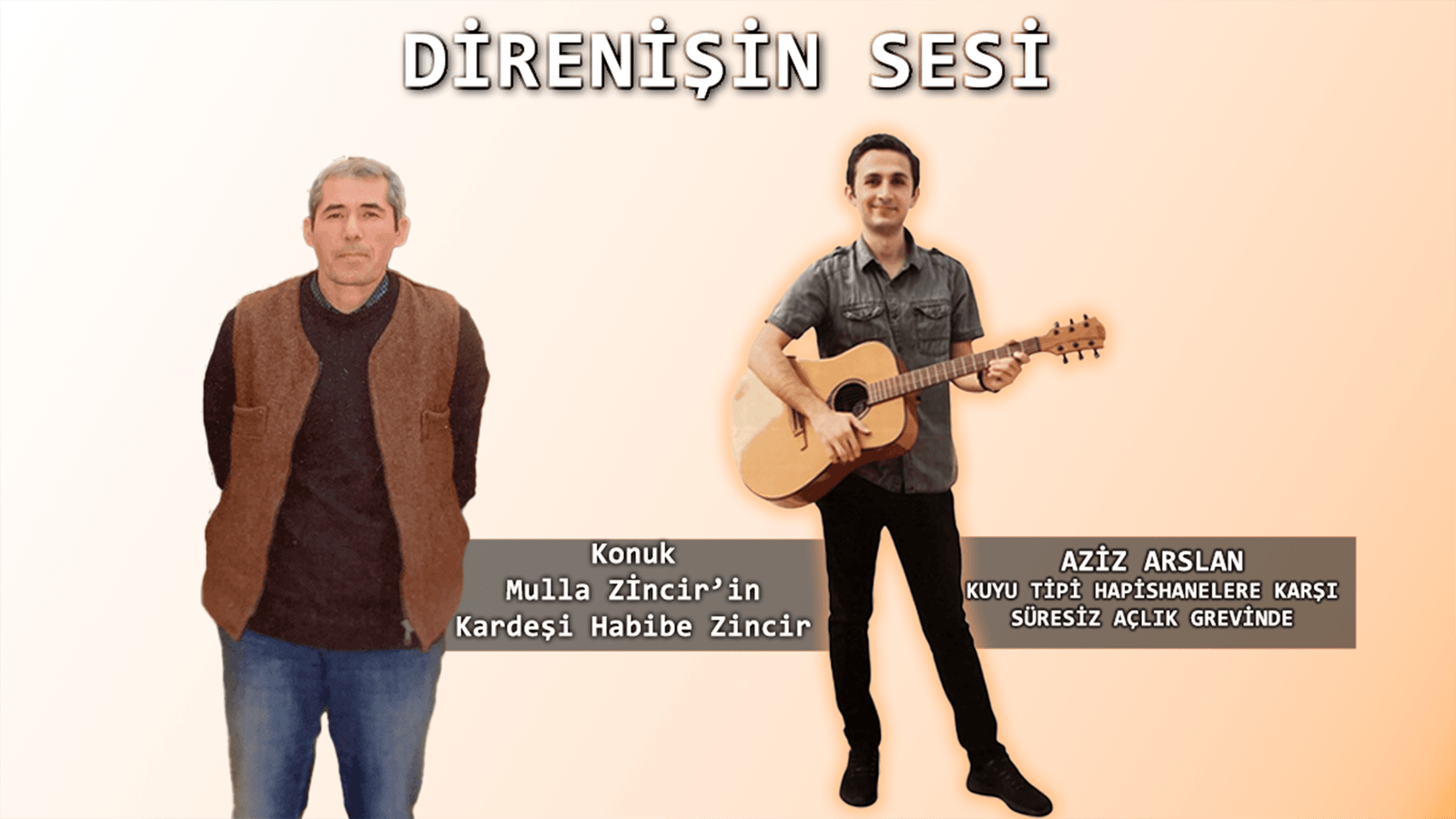 Direnişin Sesi’nde 27 Kasım Çarşamba günü yayınlanan, kuyu tipi hapishaneler ve hapishanelerde yaşanan hak gasplarına karşı süresiz açlık grevlerine devam eden Aziz Arslan, Serkan Onur Yılmaz, Mulla Zincir ve Ferdi İşçi’nin direnişlerinin anlatıldığı, konuk olarak Mulla Zincir’in kardeşi Habibe Zincir’in katıldığı bölümün kaydını paylaşıyoruz.