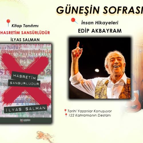 Güneşin Sofrası’nda 19 Ocak Pazar günü yayınlanan, tiyatrodan şiire, belgesel ve kitap tanıtımlarının yer aldığı, insan hikayelerinde bir an önce sağlığına kavuşması temennisiyle halk sanatçısı Edip Akbayram’ı anlattığımız, kitap tanıtımlarında ise İlyas Salman’ın ”Hasretim Sansürlüdür” kitabının tanıtıldığı bölümün kaydını paylaşıyoruz.