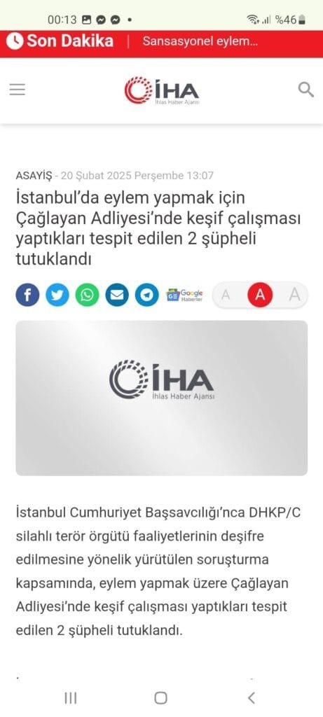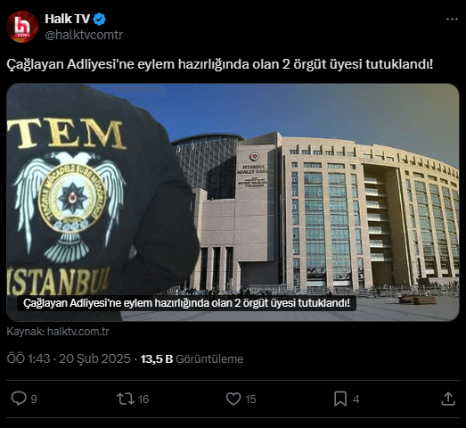 ”Çağlayan Adliyesi’ne eylem hazırlığında olan 2 örgüt üyesi tutuklandı!” (Halk TV’nin terör demogojisiyle yaptığı yalan haber)