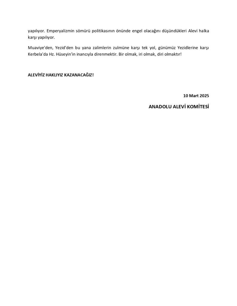 Anadolu Alevi Komitesi 10 Mart 2025 tarihinde Suriye’de Alevi halka yönelik katliamlara dair açıklama yayınladı… Açıklamayı paylaşıyoruz…
