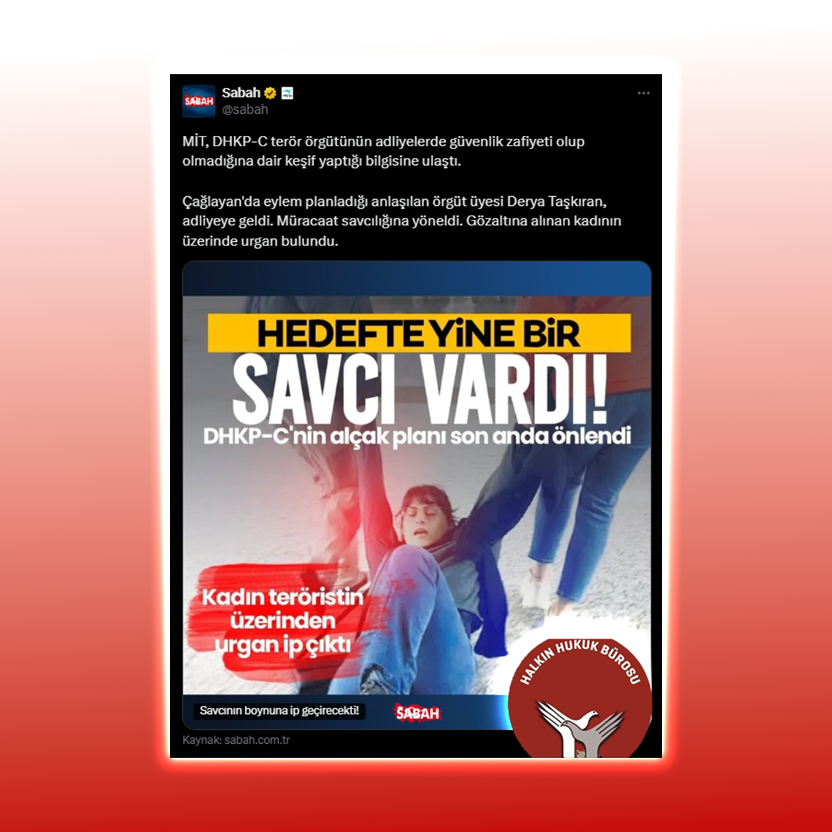 “Sabah” Gazetesi ve muadillerini meslek ahlakının asgari gerekliliklerini yerine getirmeye çağırıyoruz. Yalancılık ve ahlaksızlık yaparak insanları hedef göstermek suçtur. Yalanlarınız hakkında her türlü hukuki yola başvuracak, müvekkillerimizi sahipsiz bırakmayacağız!’’