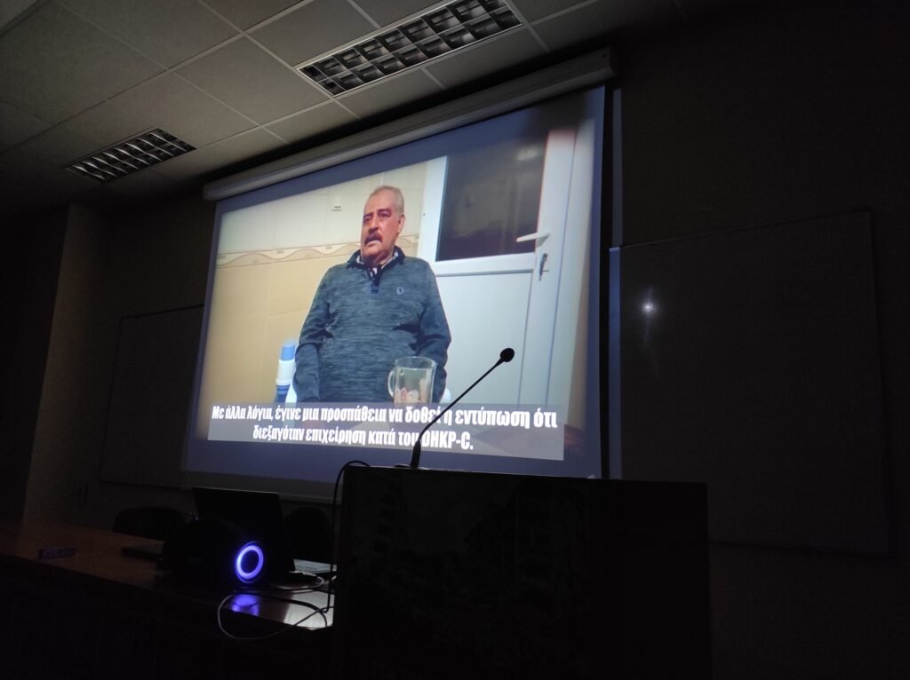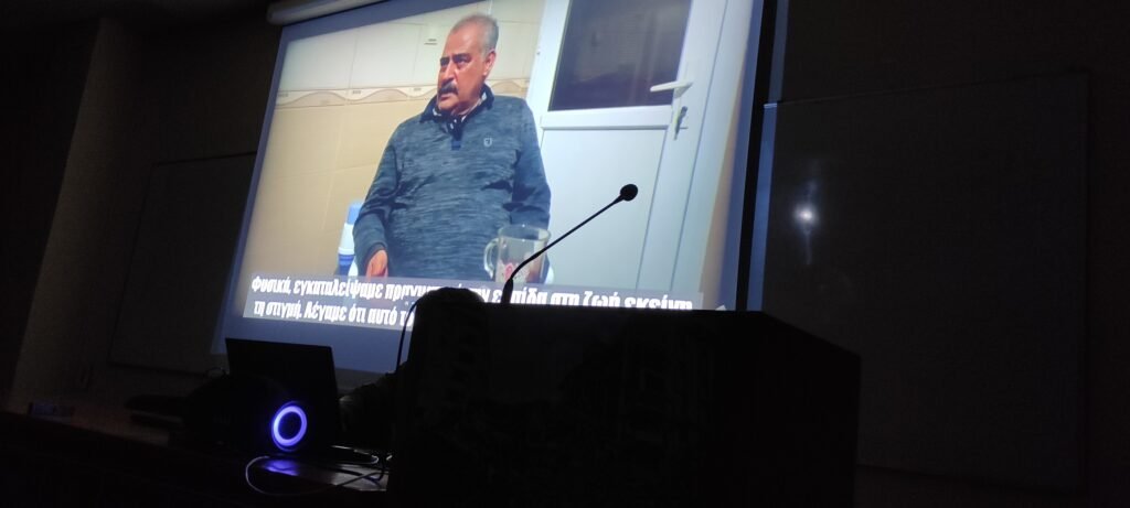 Masuras’ın konuşmasının ardından belgeselin gösterimine geçildi. Belgesel sonuna kadar ilgiyle izlendi; zaman zaman duygusal anlar, zaman zaman öfkeli anlar yaşandı. Ayrıca belgeselin görüntülerini isteyen Yunanlılar oldu. Belgesel gösterimine 55 kişi katıldı.