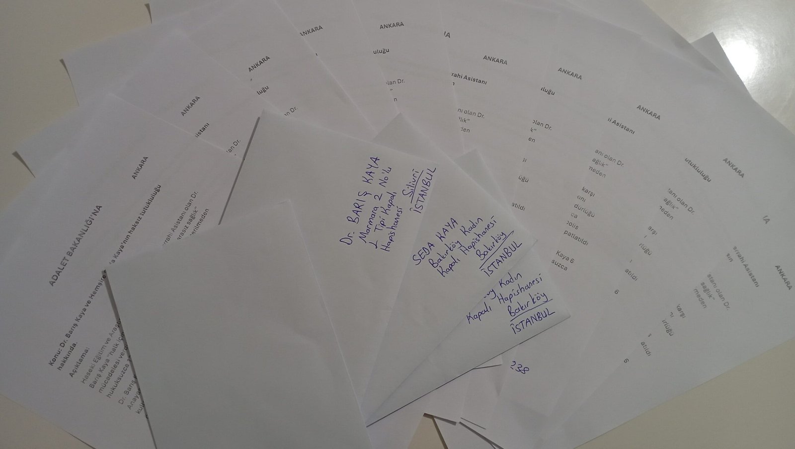 ???? “Halk için sağlık” mücadelesi verdiği için işinden ihraç edildikten sonra “İşimi geri istiyorum” diyerek direnişe geçtiği için tutuklanan Dr. Barış Kaya ve onunla birlikte direnirken tutuklanan hemşire Seda Kaya için Hatay’da 30 Haziran 2025 tarihinde 7 mektup yazıldı.