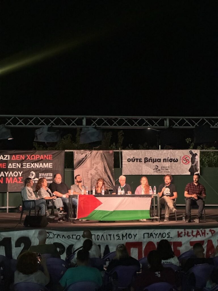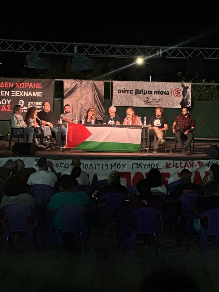 İlk gün, Filistin’e Gidiyoruz Kampanyası temsilcisi Konstantina Kartsioti, Filistin Topluluğu Yunanistan Başkanı, Yunanistan Gazze’ye Yürüyüş üyeleri, sanatçılar, akademisyenler ve Pavlos Fyssas’ın annesi ile birlikte düzenlenen panele konuşmacı olarak katıldı. Panelde, Pavlos’un anısının özgür Filistin mücadelesiyle olan bağlantısına değinildi.