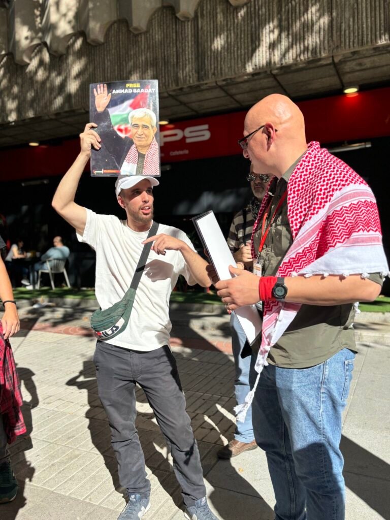 Filistin’e can olmaya giden Zafere Kadar Heyeti, İspanya’nın başkenti Madrid’de bulunan Mısır Elçiliği önünde eylem yaptı. 26 Eylül Cuma günü yapılan eylemde Madrid / Mısır Elçiliği önünde 14 kişinin katıldığı eylemde, ‘’Katil İsrail İşbirlikçi Mısır’’, ‘’Nehirden Denize Filistin Özgür Olacak”, ‘’Hürriye, Hürriye Filistin Arabia’’ sloganları atılarak işbirlikçi Mısır hükümeti teşhir edildi.