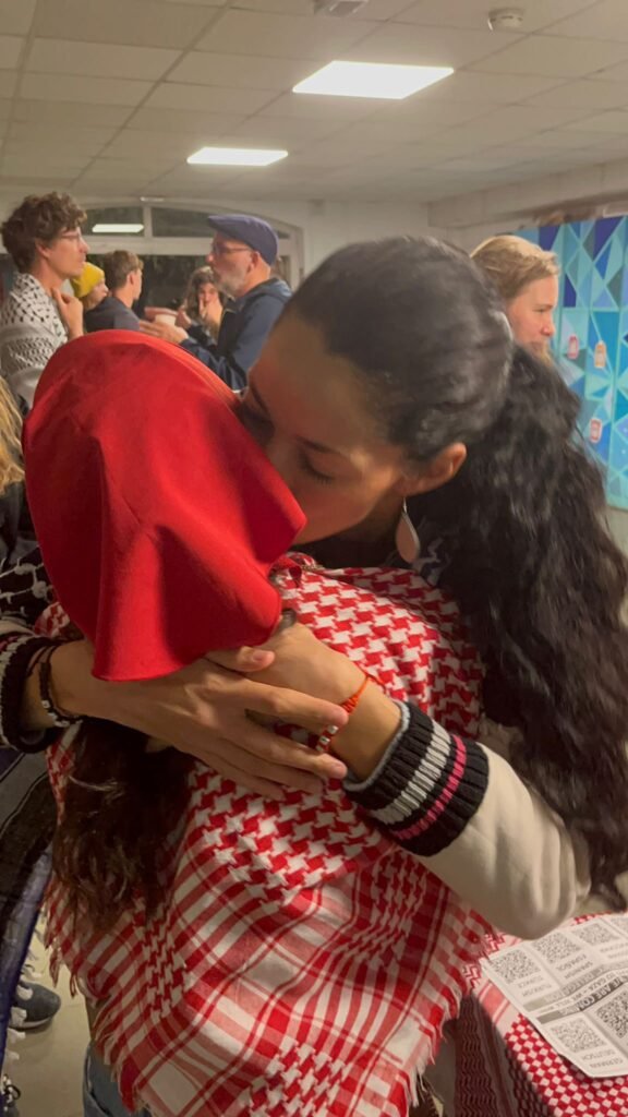 Zafere Kadar Heyeti, Filistin’e can olmaya gitmek için çıktıkları yolculuğun 11. gününde, 30 Eylül Salı günü Marsilya’da düzenlenen panele katıldı. Çok coşkulu, sahiplenici ve etkileyici geçen panele 130 kişi katıldı. Panelden sonra bir dinleyici paneli veren Derya Devrim Özçelik’e “Özgür Filistin” takılı kolyesini hediye etti.