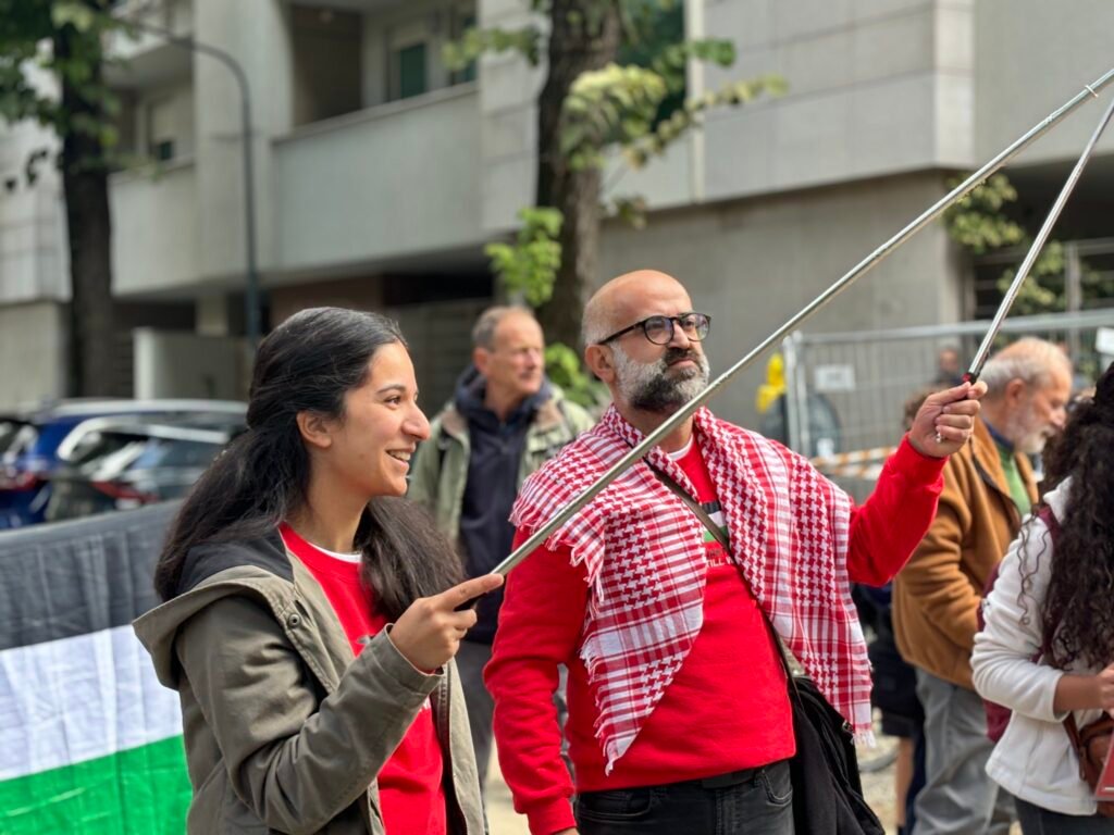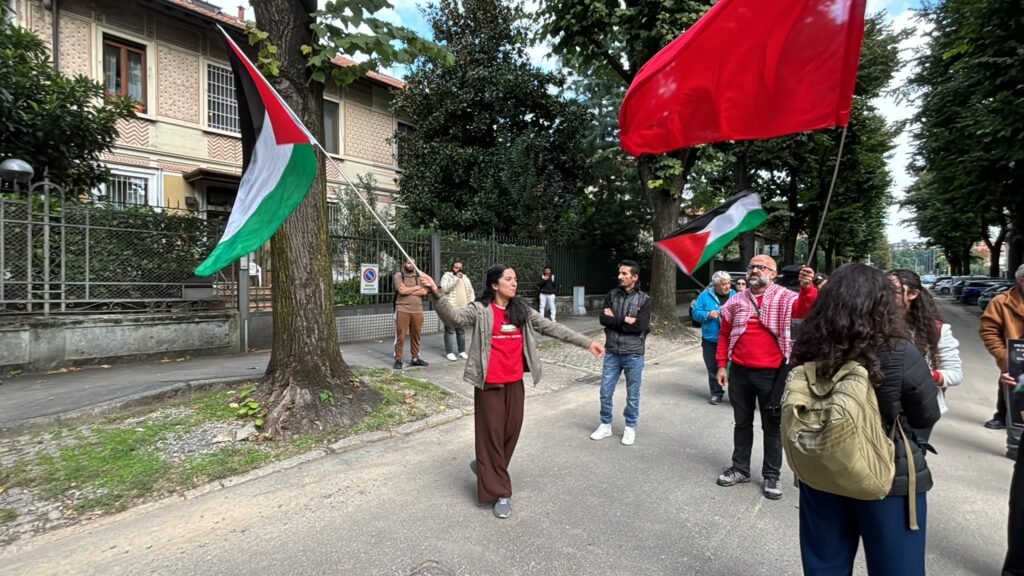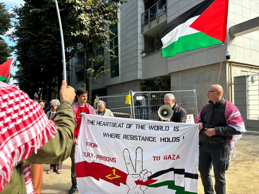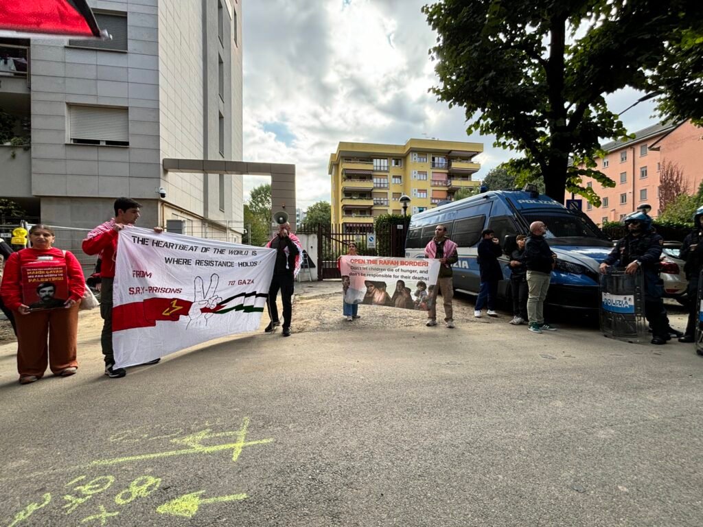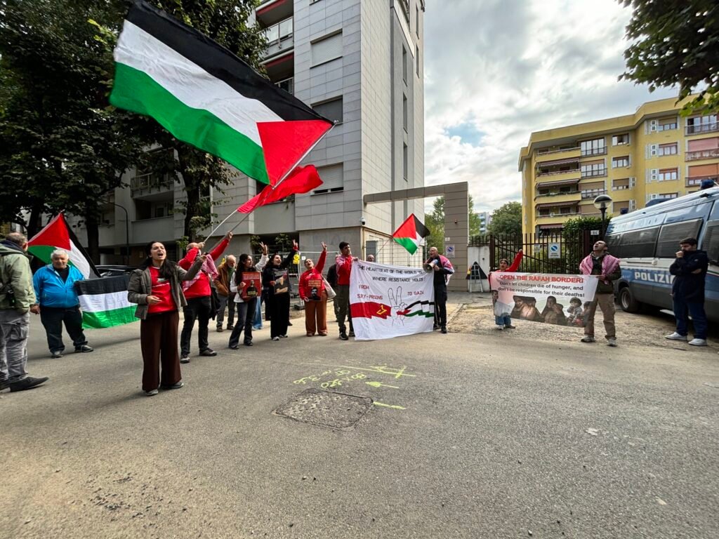 İşgalci İsrail’in Filistin halkına yönelik katliamlarına engel olmak için Filistin’e giden Zafere Kadar heyeti, İsrail’le işbirliği yaparak, Filistin’e dayanışmaya gidenlere kapıları kapatan Mısır devletini teşhir etmek için Milano’da Mısır Konsolosluğu önünde eylem düzenlediler.