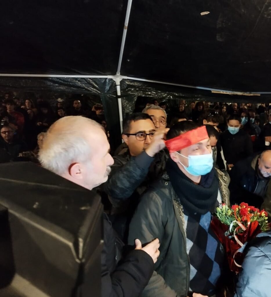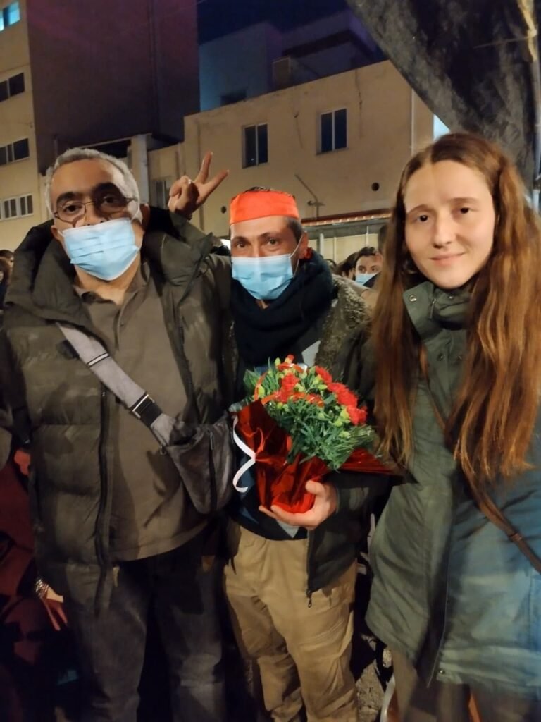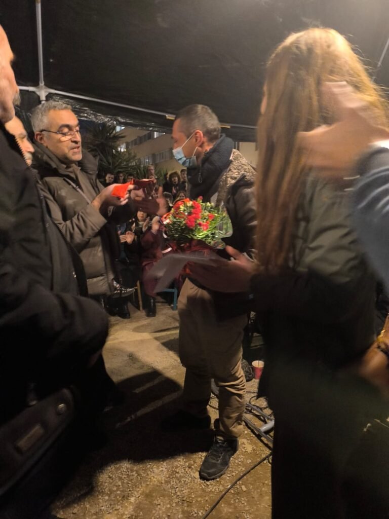 Aristotelis Hantzis’in konuşmasının bitiminde Yunanistan Halk Cephesi’nin mesajı okundu. Ölüm orucu direnişi gazileri tarafından karanfil ve ölüm orucu direnişçilerini ve şehitlerini temsilen kızıl alın bandı hediye edildi. Aristotelis, ‘’Dünyanın her tarafında uluslararası dayanışma budur ve mücadele de böyle ilerliyor!’’ diyerek dayanışmadan duyduğu mutluluğunu dile getirdi.