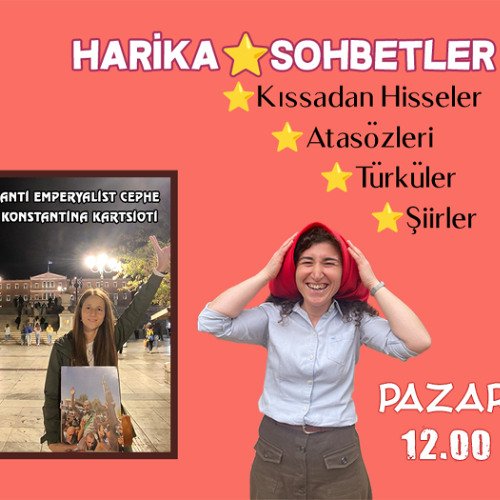 Harika Sohbetler, kıssadan hisseler, atasözleri, türküler, şiirlerle, 19 Nisan Pazar tarihinde yayınlanan, İran halkının öfkesine-acısına ortak olmaya İran’a gidecek heyette yer alan Anti Emperyalist Cephe’den Konstantina Kartsioti’nin konuk olarak katıldığı bölümün kaydını paylaşıyoruz.